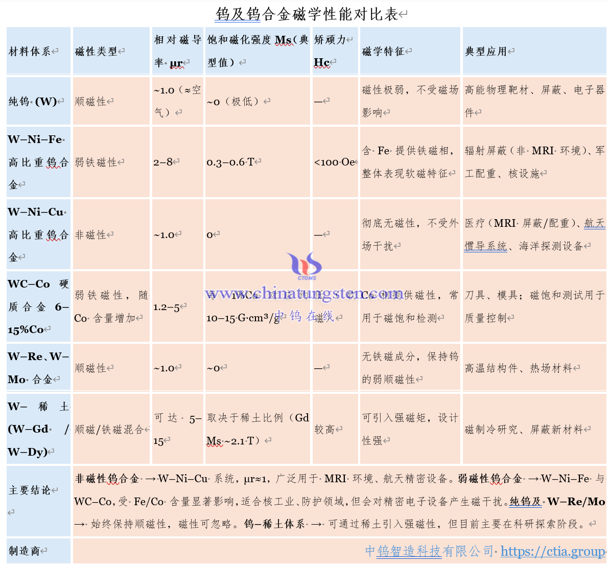 钨合金的磁学性能和行为如何?(Magnetic properties)