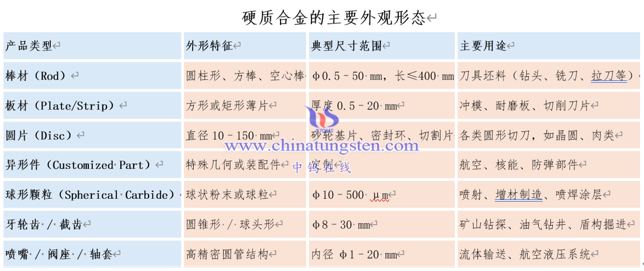 硬质合金根据用途和后续加工方式,通常制成以下形状与产品形态: