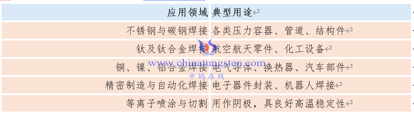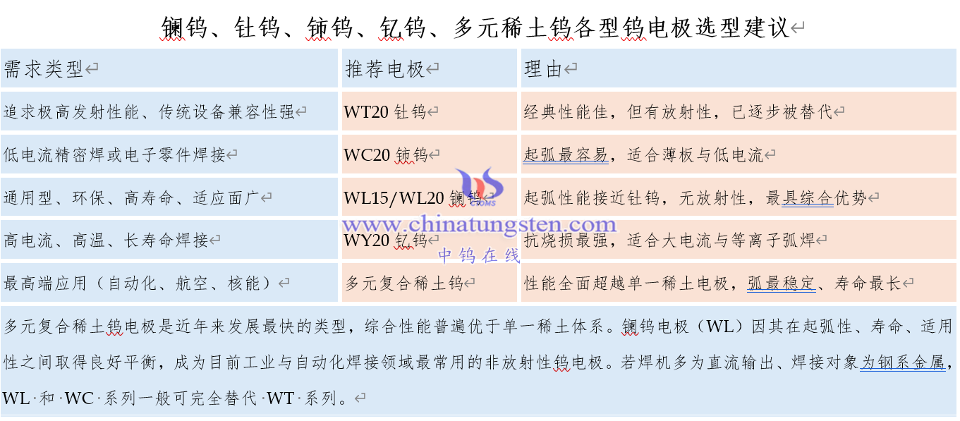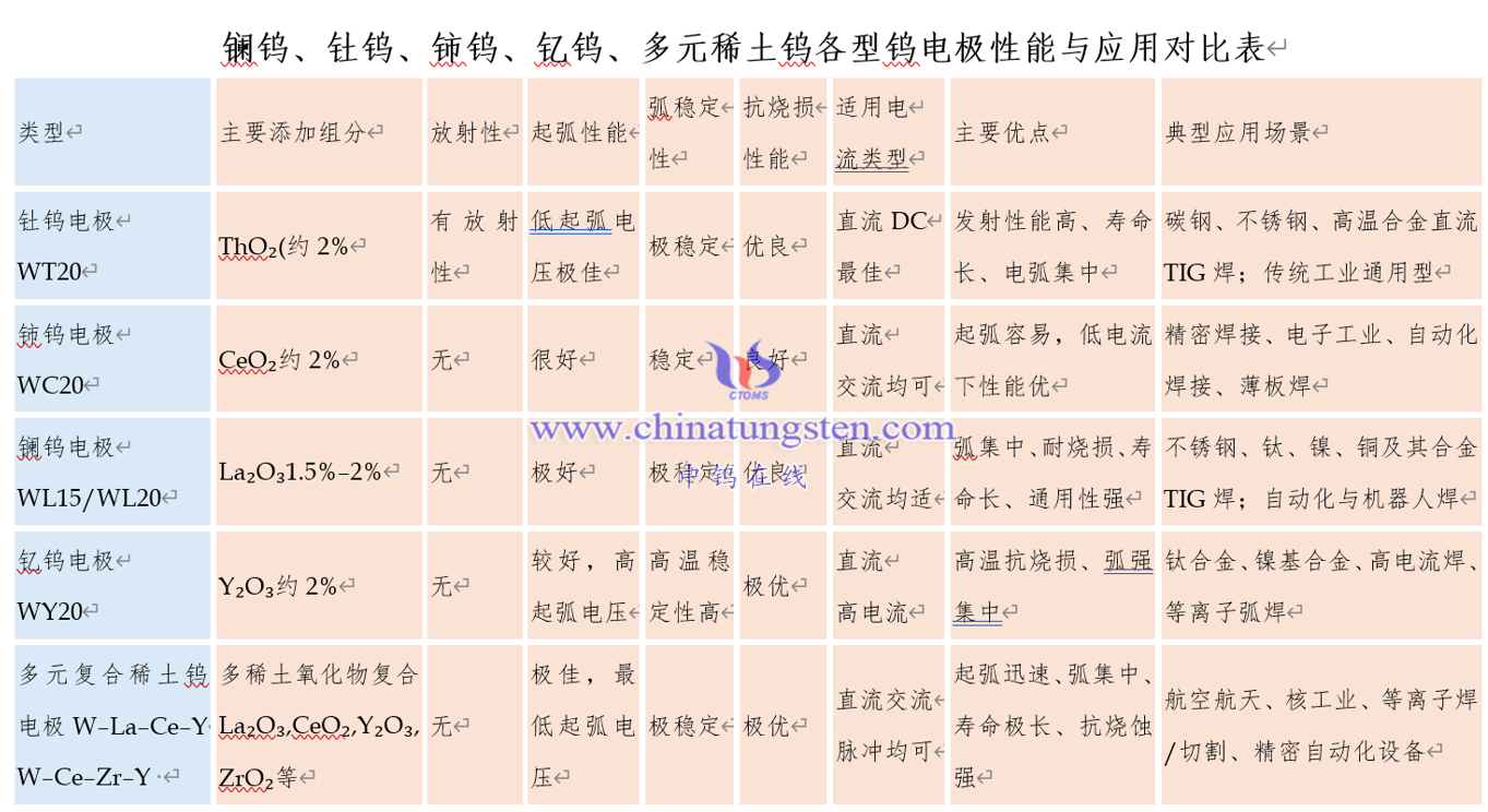 镧钨、钍钨、铈钨、钇钨、多元稀土钨各型钨电极性能与应用对比表