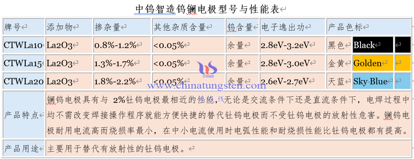 WL20 | 约 2.0% La₂O₃ | 天蓝色 | 高电流密度、高寿命型 |
