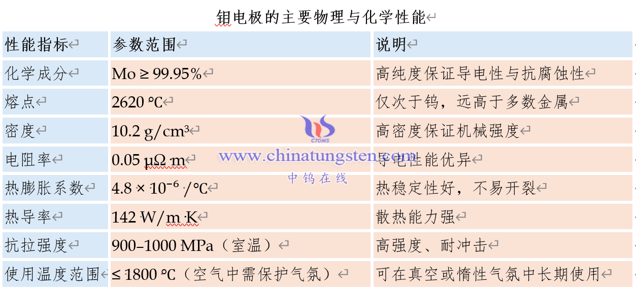 钼电极的主要物理与化学性能