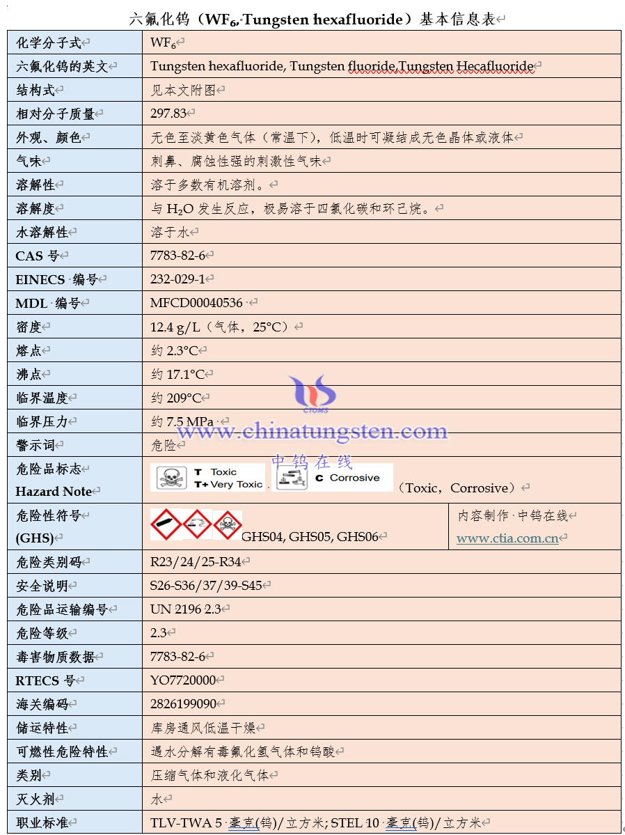 六氟化钨(WF₆, Tungsten hexafluoride)基本信息表