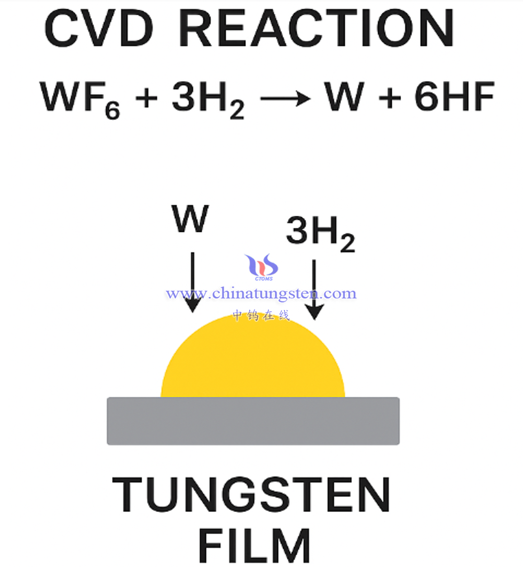 这是一种典型的化学气相沉积反应(CVD),用于沉积纯钨薄膜。