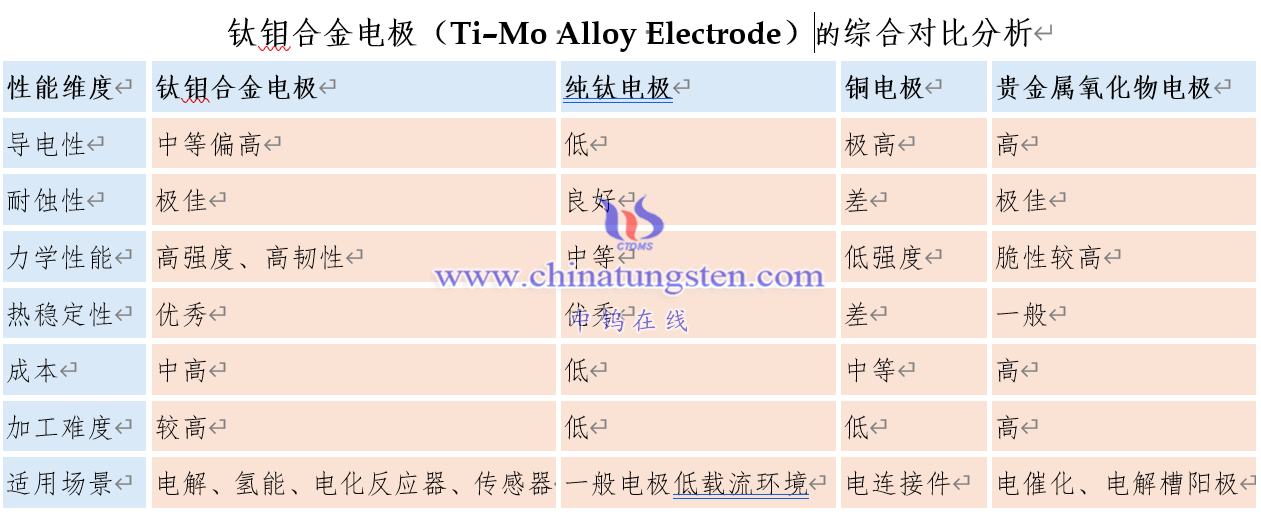 三、钛钼合金电极(Ti–Mo Alloy Electrode综合对比分析