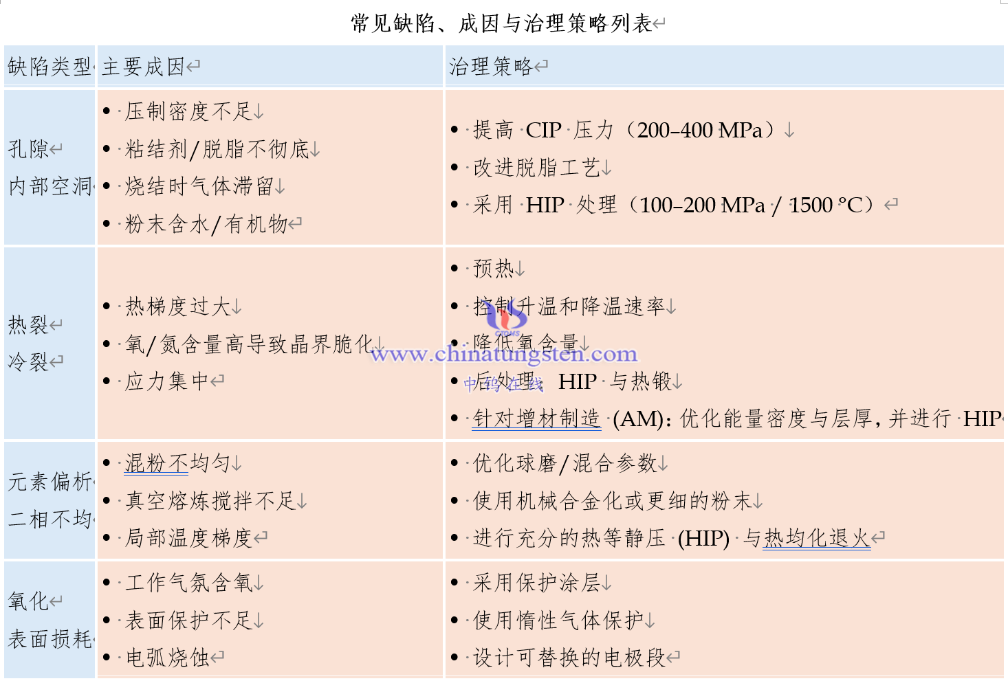 Mo与TZM在激光熔池中极易发生热裂,原因包括高脆性基体、氧/氮引起的晶界脆化与高热梯度。文献表明通过粉末成分优化(适量Ti)、基板预热、控制能量输入与后处理(HIP)可减轻裂纹。