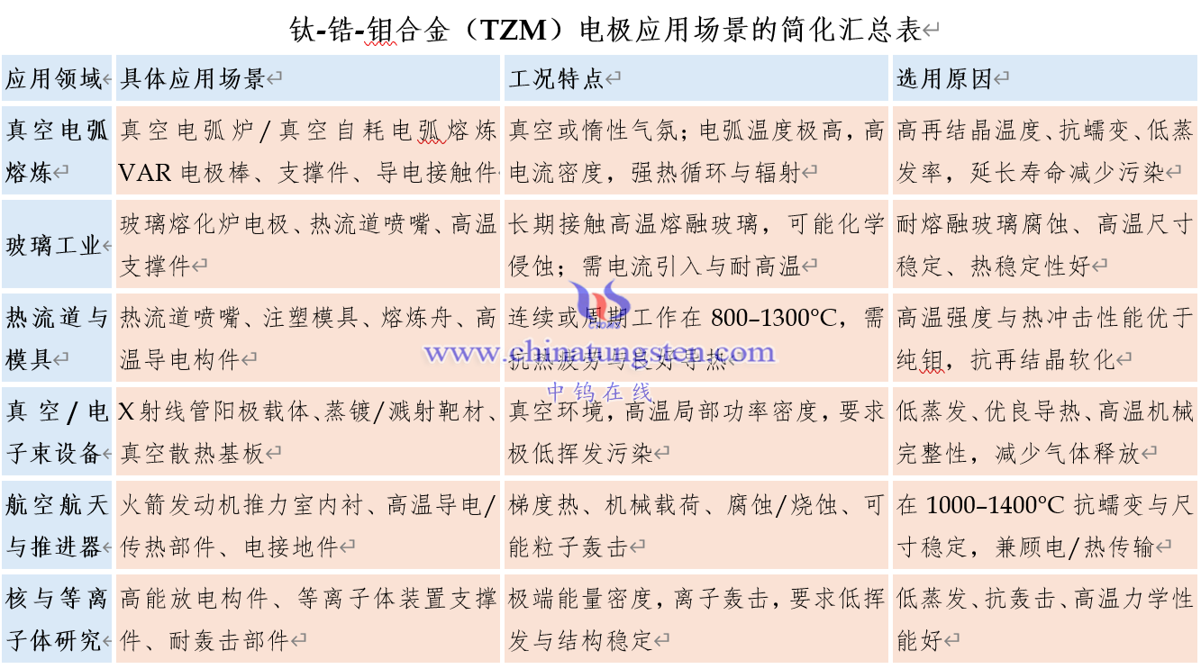 中钨智造的具备从合金配方、热处理、加工至尺寸加工的完整能力,目前已经推出“钛锆钼(TZM)板”、“钛锆钼(TZM)棒材“钼合金(TZM)电极”系列产品,其钛-锆-钼合金(TZM)电极可根据客户需求定制加工各种规格、性能、尺寸和牌号。详情可以访问cn.ctia.groupbaike.ctia.com.cn。客户可联系中钨智造获取其TZM电极产品样本、物理/电气/热性能测试报告以及定制服务,从而直接用于真空熔炼、玻璃熔化、热流道、电子高温设备、航天结构件等场景。