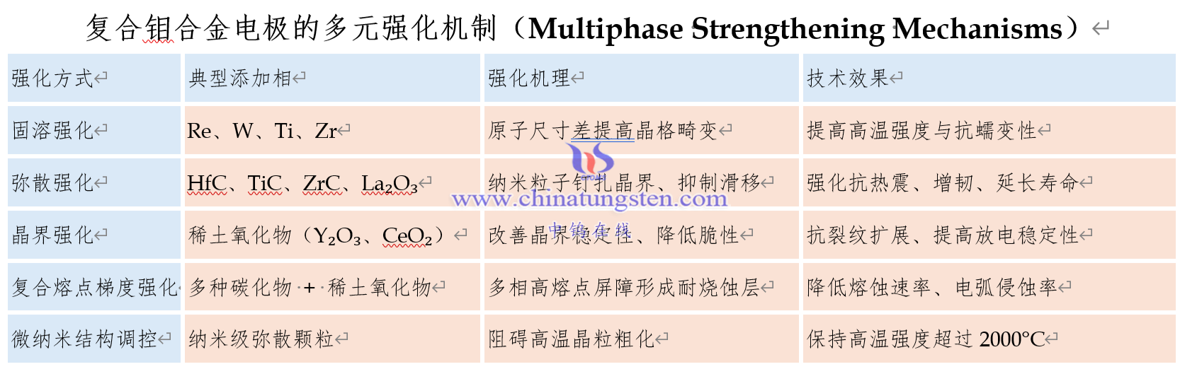 复合钼合金电极的多元强化机制(Multiphase Strengthening Mechanisms