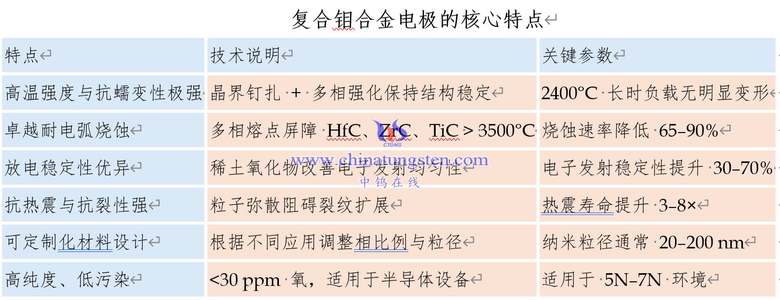 三、复合钼合金电极的核心特点