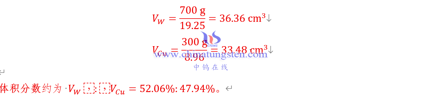 体积分数约为 V_W “ ⁣”:” ⁣” V_Cu=52.06%:47.94%。
