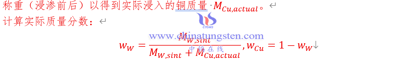 这里 M_(W,sint)为烧结后钨骨架的实际钨质量(可通过浸渗前称量并扣除有机损失得到)。