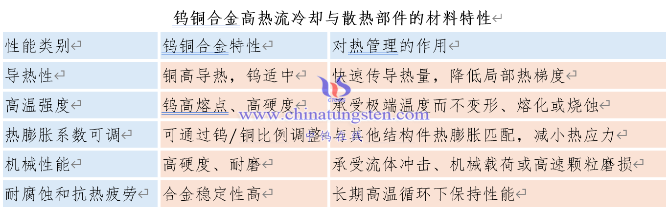- 钨铜合金高热流冷却与散热部件的材料特性与优势