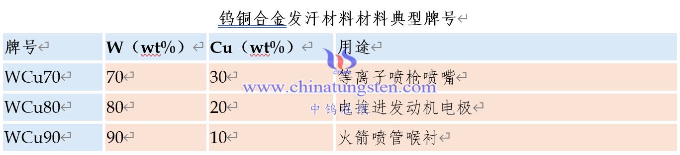 三、钨铜合金发汗材料典型材料结构与成分范围