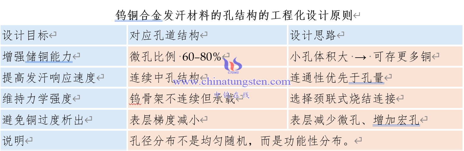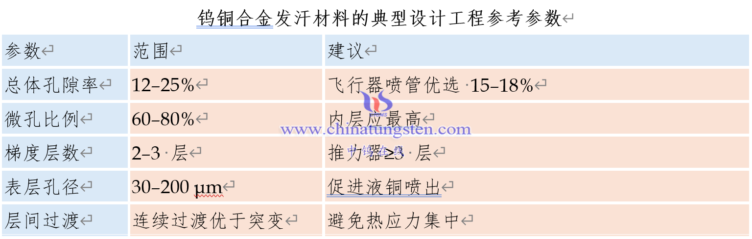 钨铜合金发汗材料的孔结构的工程化设计原则