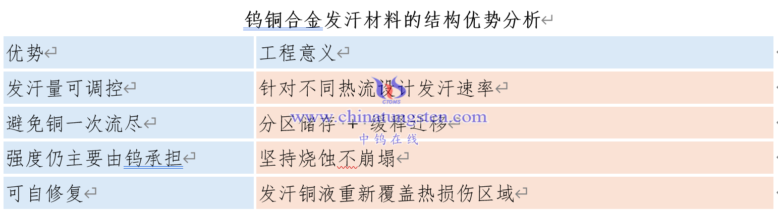 六、钨铜合金发汗材料的结构优势分析