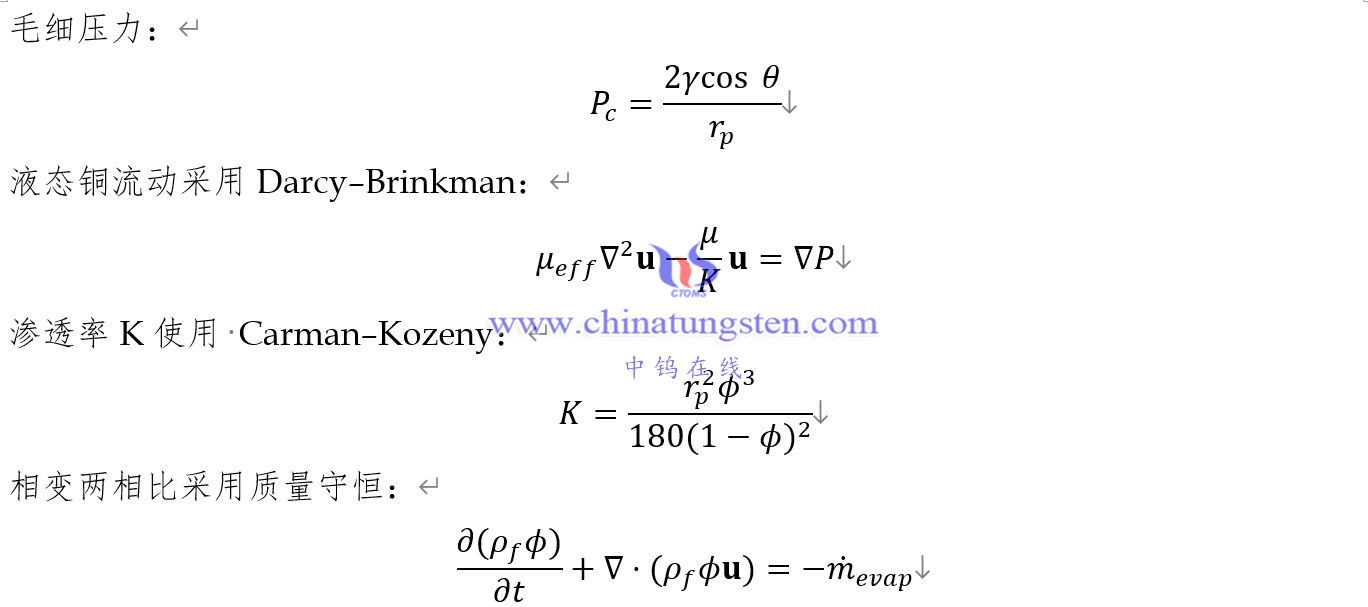 二、钨铜与钼铜发汗材料的热场方程(固体骨架+流体耦合)