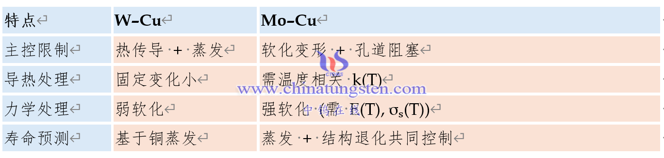 六、W–Cu 与 Mo–Cu 的耦合求解差异总结
