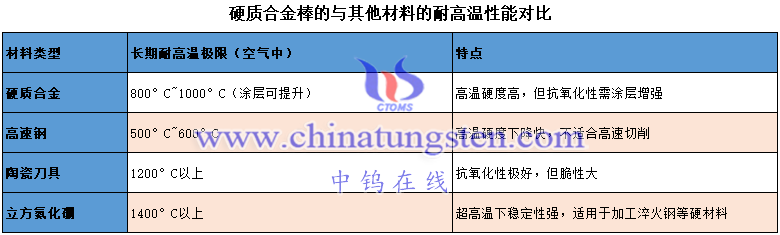 4. 硬质合金棒的与其他材料的耐高温性能对比