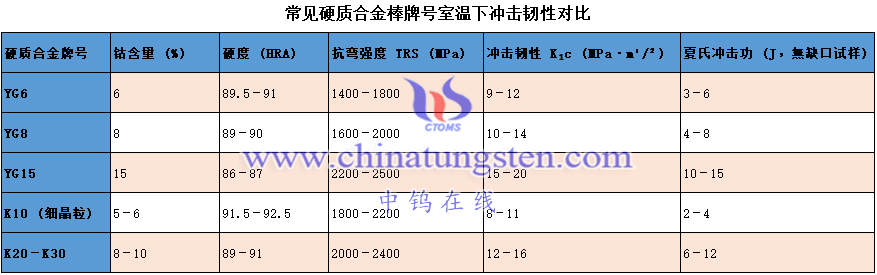 3. 常见硬质合金棒牌号室温下冲击韧性对比