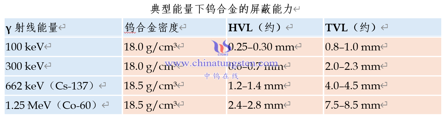 四、典型能量下钨合金的屏蔽能力(示意数据)