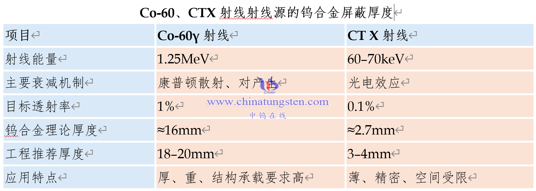 Co-60、CTX射线射线源的钨合金屏蔽厚度如何计算?