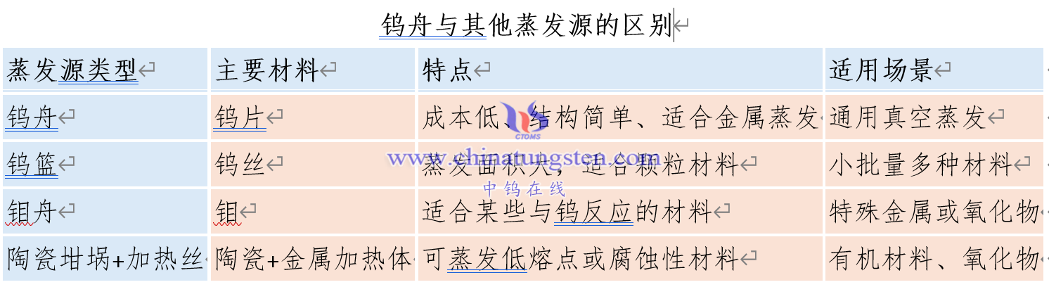 六、钨舟与其他蒸发源的区别