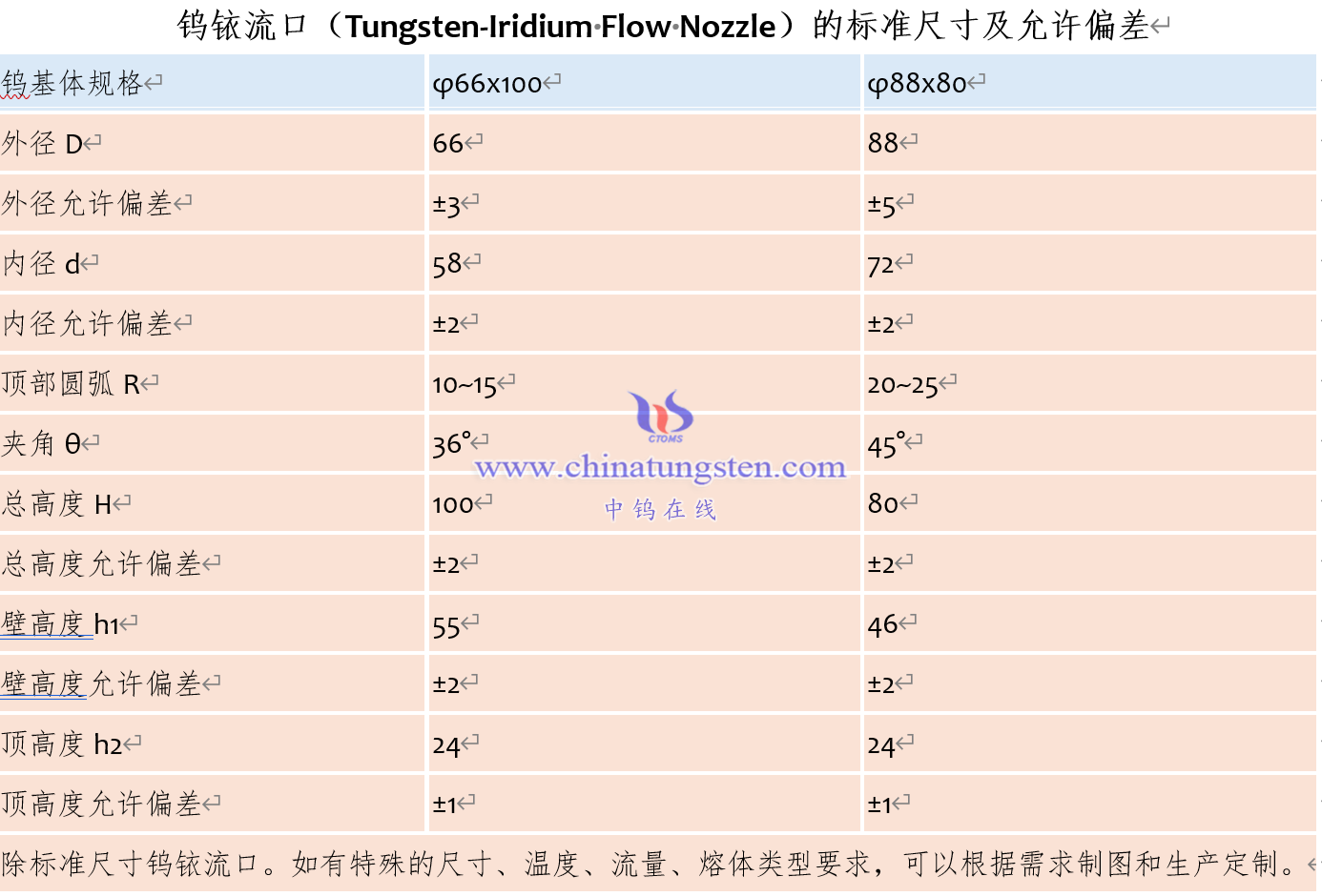 钨铱流口(Tungsten-Iridium Flow Nozzle)的标准尺寸及允许偏差