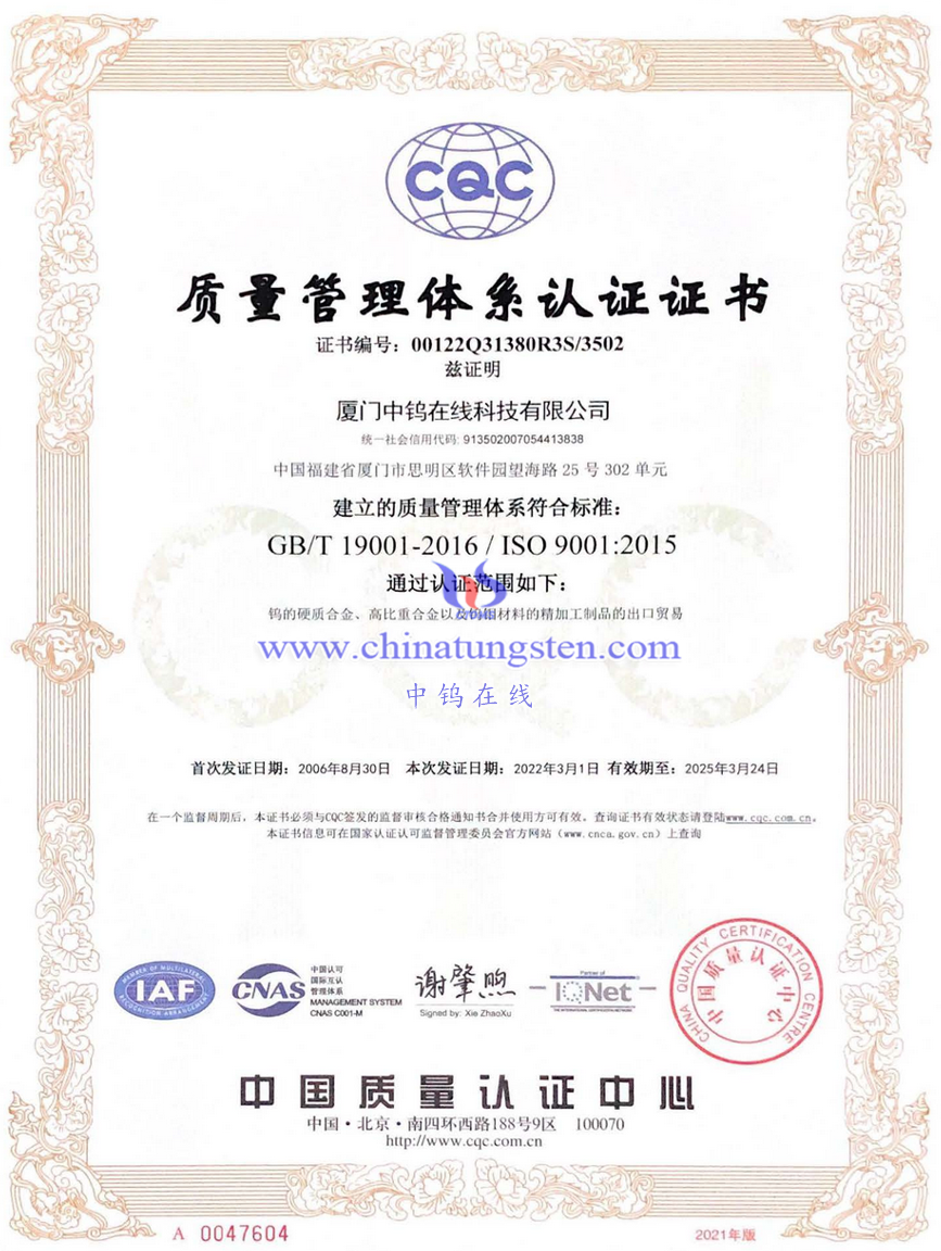 电话:0592-5129595 邮箱:sales@chinatungsten.com