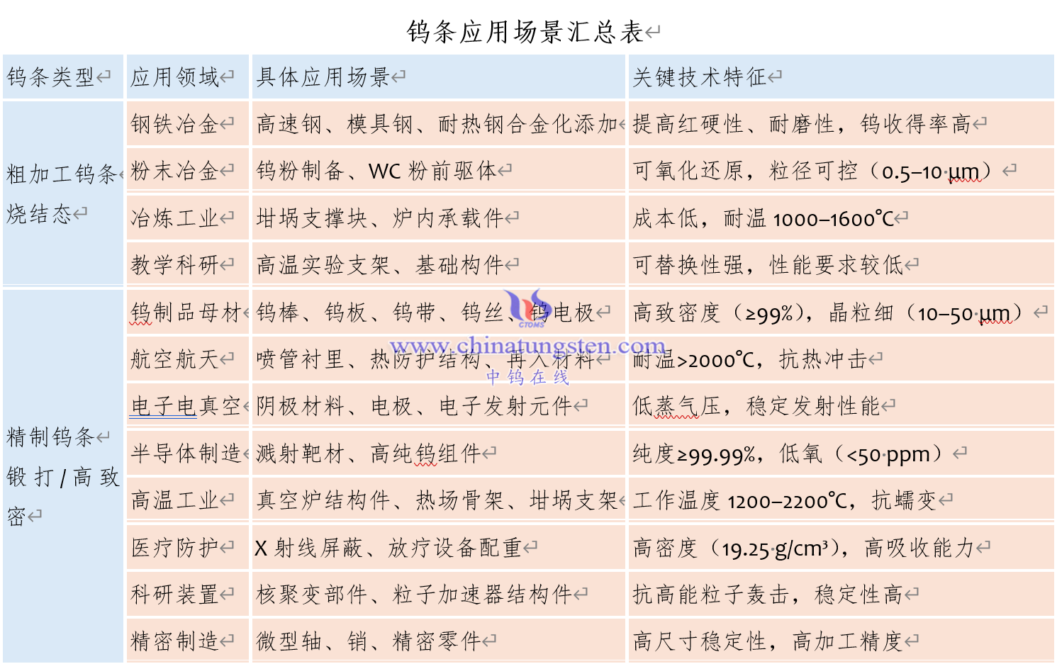 钨条应用场景汇总表