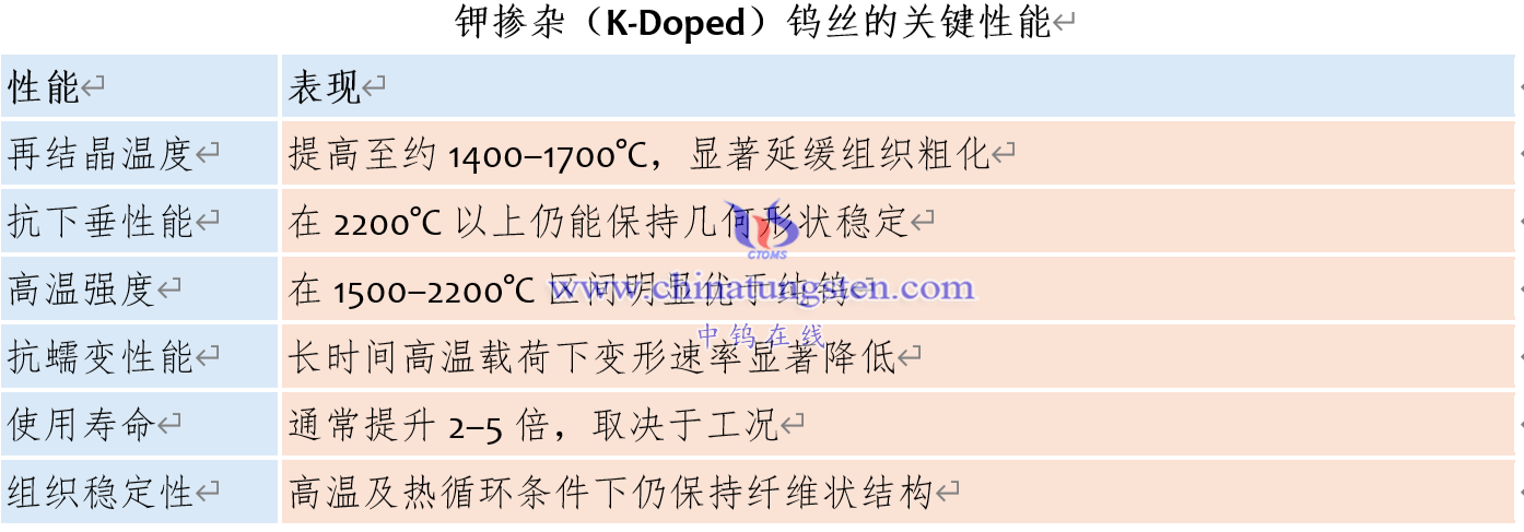 四、钾掺杂(K-Doped)钨丝的关键性能
