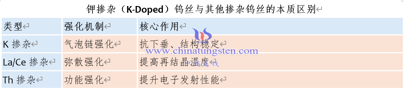七、钾掺杂(K-Doped)钨丝与其他掺杂钨丝的本质区别