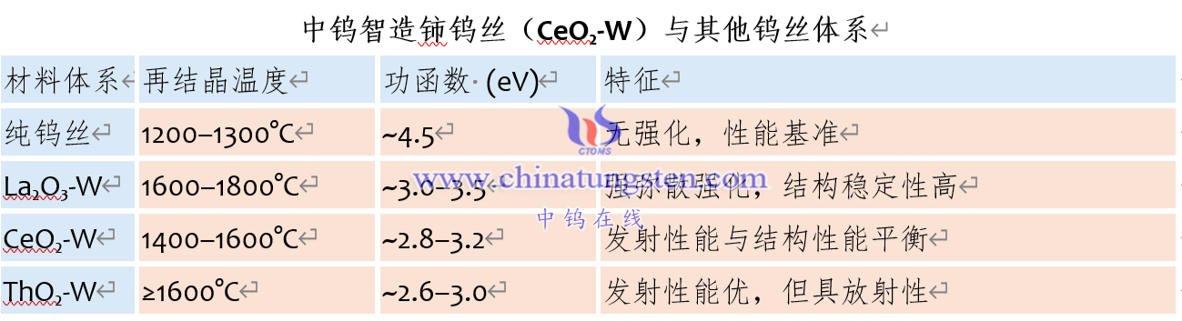中钨智造铈钨丝(CeO₂-W)与其他钨丝体系