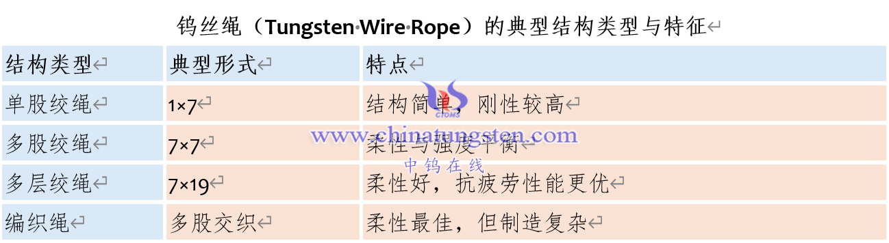 钨丝绳(Tungsten Wire Rope)的典型结构类型与特征