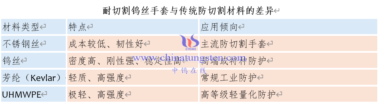 耐切割钨丝手套与传统防切割材料的差异