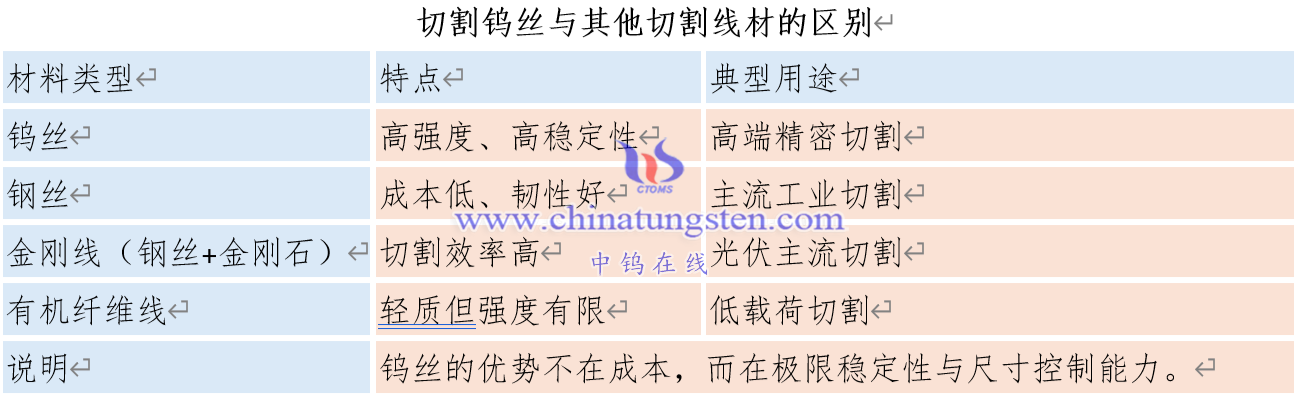 切割钨丝与其他切割线材的区别
